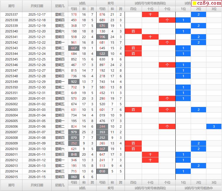 首页 > 福彩3D预测 > 26年015期福彩3D试机号走势图表分析